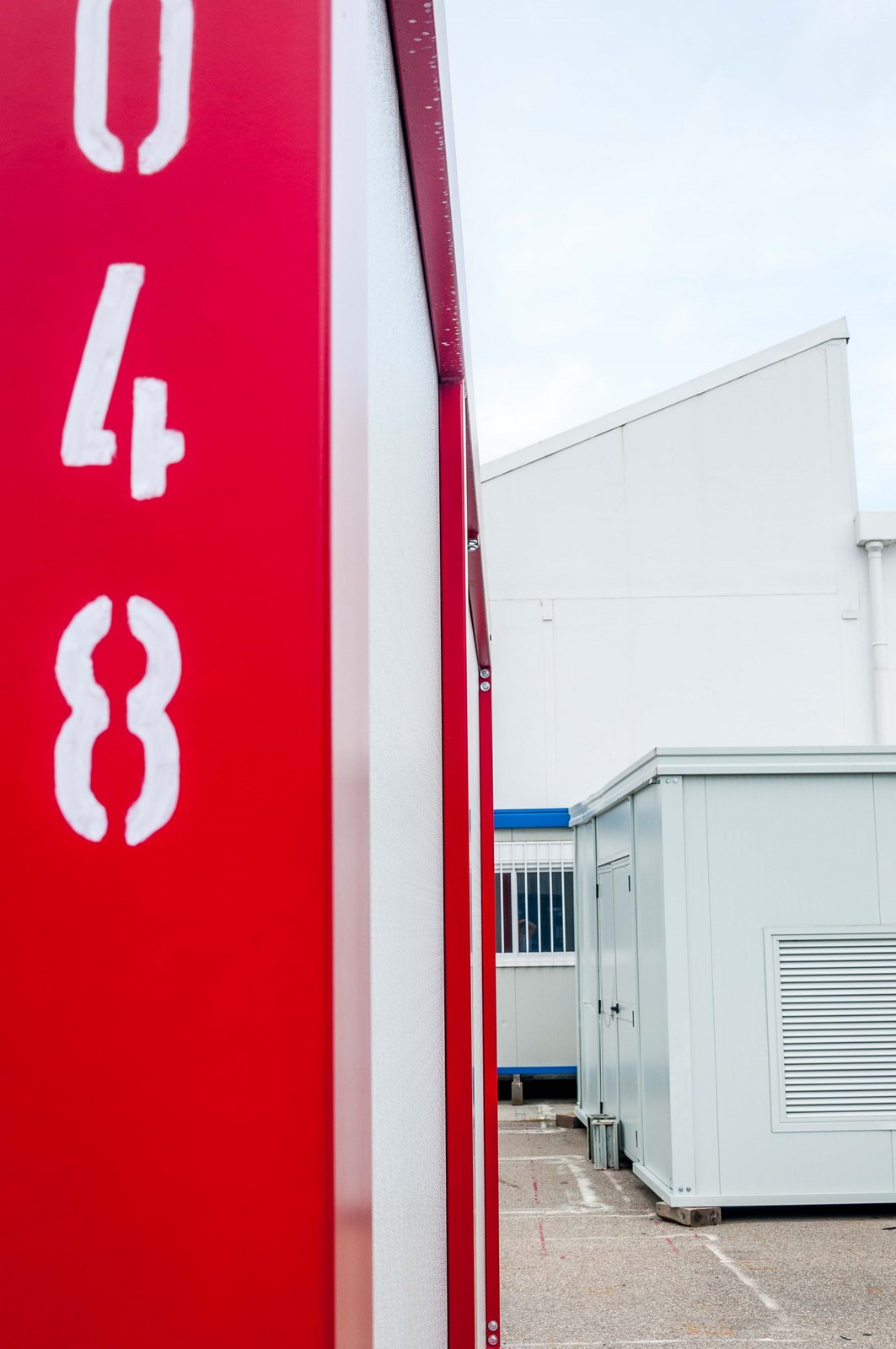 Toiture: Bac plafond en tôle RAL 9002 avec isolement en laine minérale 100mm et panneaux sandwich épaisseur 50+40mm polyuréthane composés de 2 tôles micronervurées,galvanisées laquées blanc/gris, la partie extérieure ayant une forme trapézoïdale.
